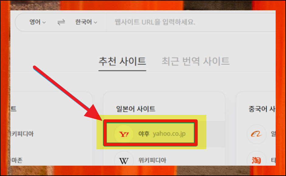 네이버 파파고가 번역 도우미 역할을 해드립니다. 일본어로 만들어진 야후 재팬 같은 사이트를 통째로 한국어로 변환해주는 기능을 제공해요. 처음 사용하는 사람도 쉽게 따라할 수 있어요.