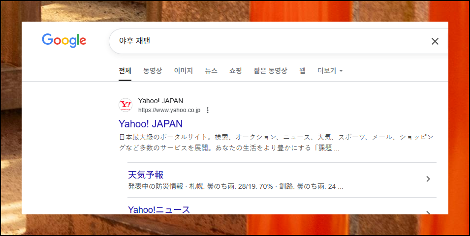몇 초 후 이렇게 한글판으로 된 야후 재팬 홈페이지가 등장해요. 일본어가 우리말로 자연스럽게 변환됩니다. 이제 외국어 웹사이트 때문에 어려움을 겪지 않아도 돼요.