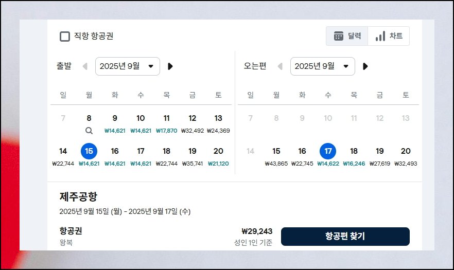 해당 사이트에서 달력 형태로 표시되는 요금표는 혁신적인 기능이라고 생각해요. 각 날짜별 최저 운임이 표시되어 예산에 맞는 일정을 쉽게 정할 수 있습니다. 여행 날짜 조정이 가능하다면 이런 방식이 특히 도움이 되는데요. 날짜 선택을 잘해야 마음에 드는 국내선 항공권을 구하기가 수월해집니다.