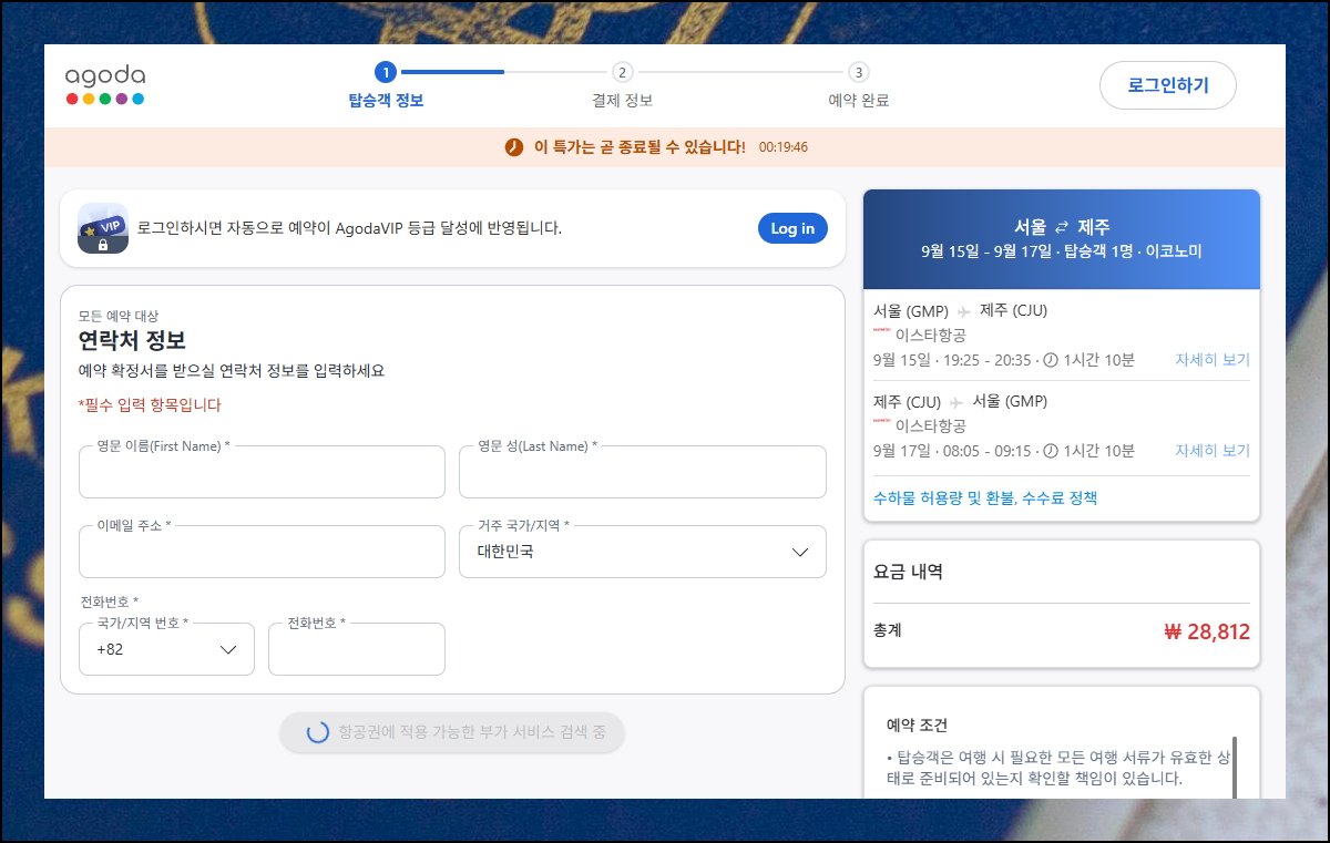 최종 결제 화면에서는 기본 항공료부터 각종 세금까지 모든 비용이 상세하게 표시됩니다. 각 항목을 검토한 다음 결제를 완료하면 과정이 모두 끝나요. 이제 즐거운 여행 준비만 하면 되겠네요. 국내선 항공권 예약이 복잡해 보이지만, 이런 순서로 진행하면 간단해요.