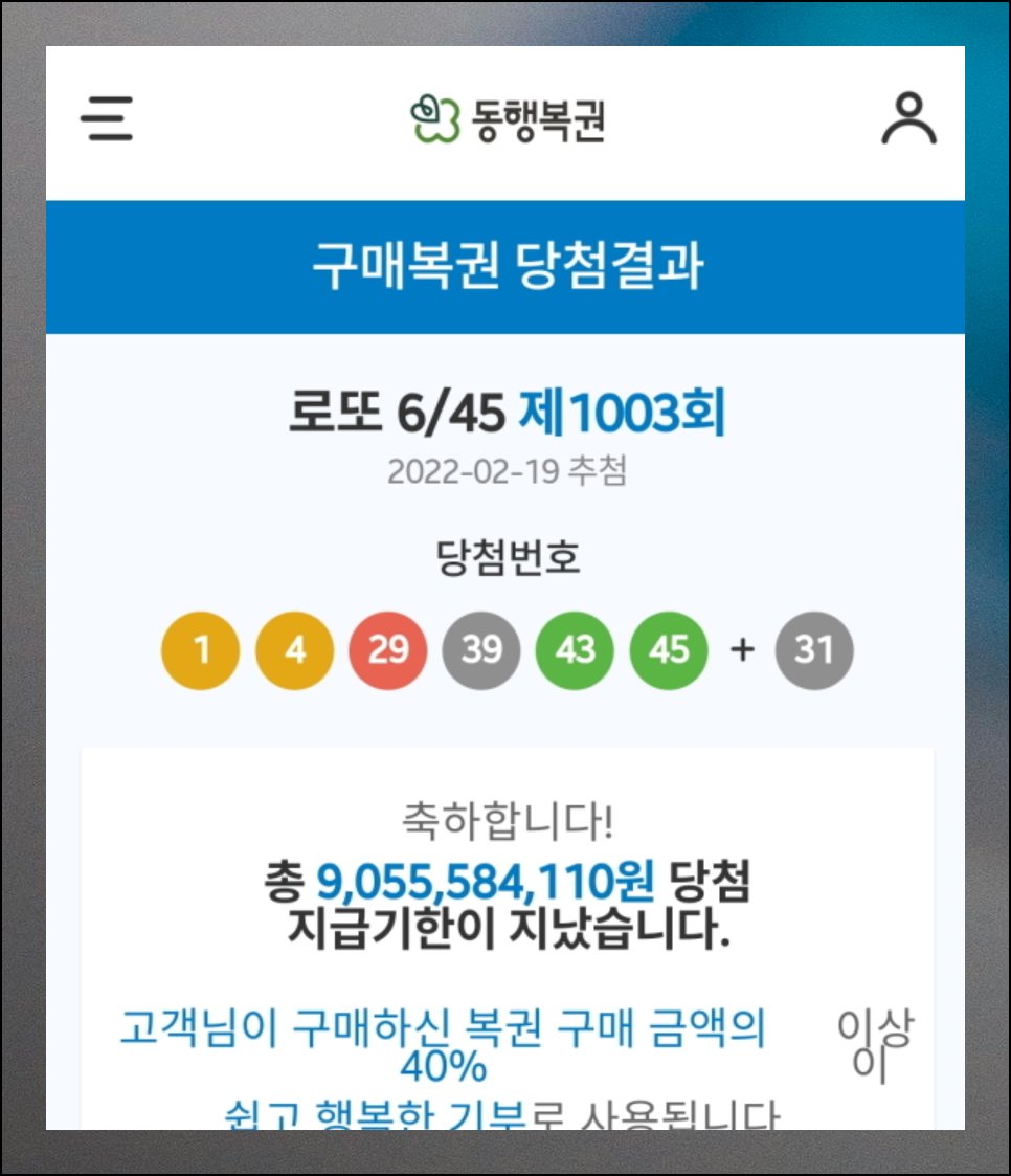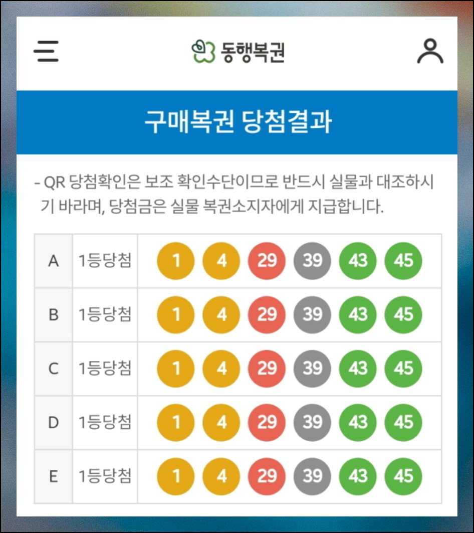 나타난 메뉴를 터치하면 당첨 번호 조회 페이지로 이동해요. 이후 과정은 앞서 설명한 방식과 동일하기 때문에 추가 설명은 생략할게요. 몇 초 만에 당첨 여부를 바로 파악할 수 있습니다.