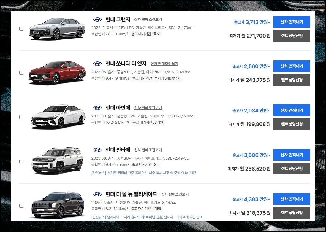 | 현대차 가격표 신차 제대로 알아보기 (0) | 2025.09.03 |