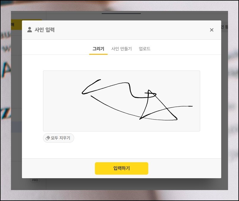 직인 외에 서명 이미지 파일을 생성하는 기능도 제공됩니다. 합의서나 승인 절차에 쓰기 안성맞춤이에요. 터치나 마우스로 직접 그리거나 글자를 넣으면 시스템이 알맞은 서명을 자동 생성해 줍니다.