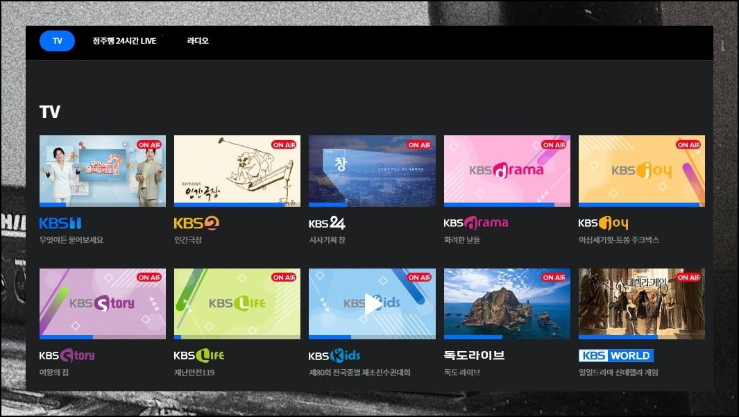 영상 플레이어 하단부를 보면 추가 채널 리스트가 나란히 배치되어 있어요. kbs실시간 라디오 항목도 포함되어 있으니 소리로만 프로그램을 감상하고 싶은 분께 안성맞춤입니다.