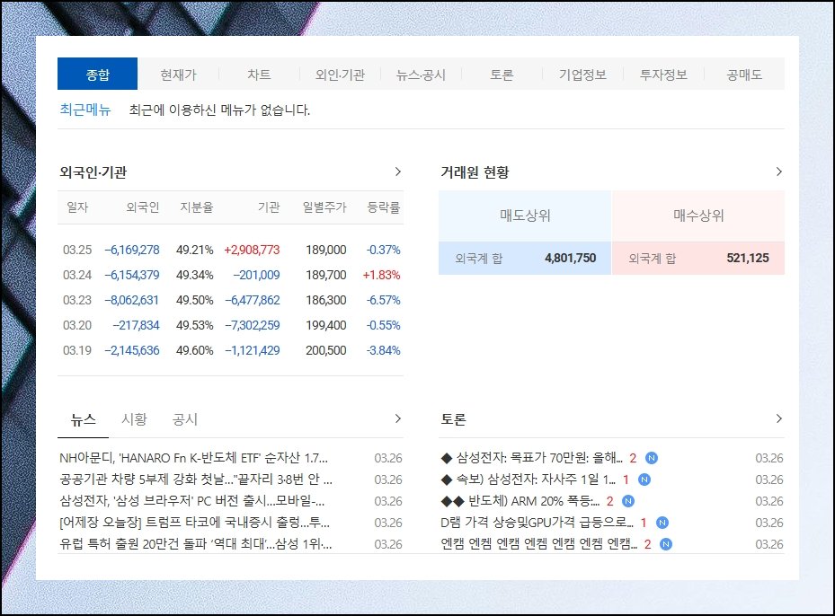 다음증권 상세 주가 조회 메뉴를 택하면 특정 기업만 집중 조명하는 영역이 펼쳐져요. 각 증권사가 어떻게 거래에 참여하는지 파악할 수 있고 해외 자본과 기관 세력의 매매 패턴도 꼼꼼히 들여다볼 수 있습니다. 게시판 형태의 공간에서 다른 참여자들과 생각을 나눠보는 것도 가능해요.