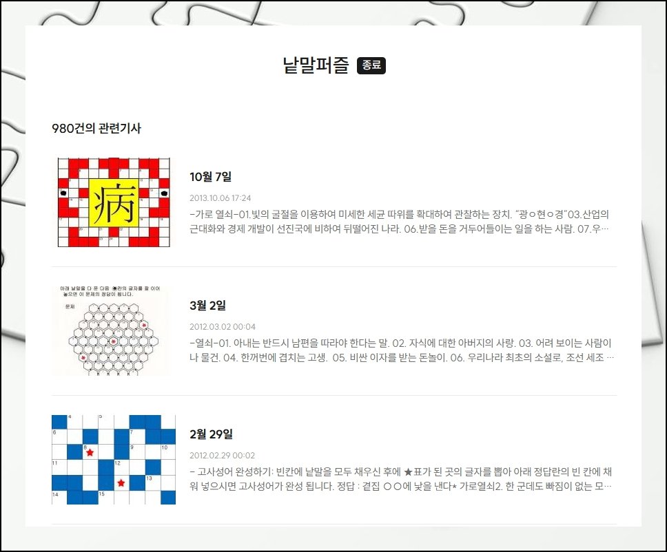 스포츠경향 페이지의 강점은 지난 시절 연재된 세로 문항을 통째로 풀어볼 수 있다는 부분이에요. 세월이 흘러도 단어가 지닌 뜻은 그대로라 지금 봐도 쓸모 있는 학습 자료가 됩니다. 가로세로 모양 말고도 색다른 형태의 퍼즐이 함께 차려져 있어 풍성한 재미를 누리게 됩니다.